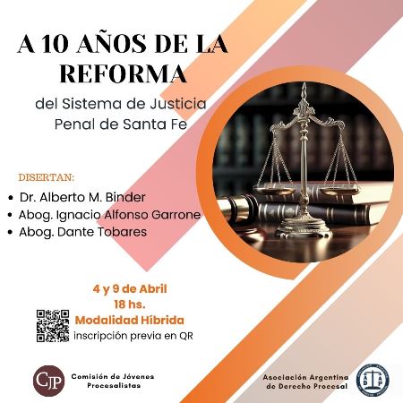 Los días 4 y 9 de abril a horas 18.00 se llevará a cabo la actividad titulada "A 10 años de la reforma de la Justicia Penal de Santa Fe".