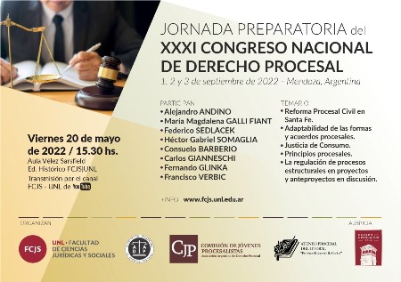 El próximo viernes 20 de mayo del año en curso se llevará a cabo la Jornada Preparatoria del XXXI Congreso Nacional de Derecho Procesal.